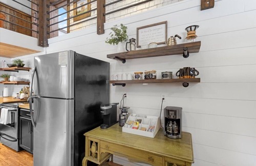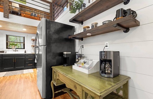 - We have a fully stocked kitchen with a coffee maker, Keurig, French press, pour-over, coffee grinder, and tea kettle. We have a starter supply of teas and coffee