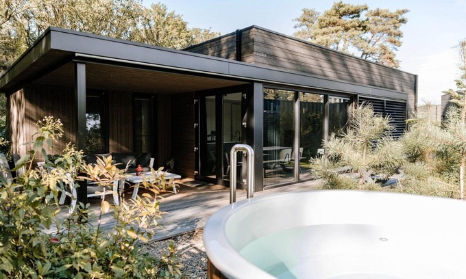 This Eco-Lode is furnished for six persons as well but also has an extra hot tub. This means you can relax completely from your own patio and grab your own wellness moment! | House in Rhenen