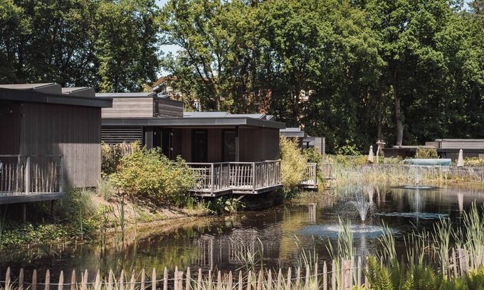 This Luxurious Eco-Lodge, situated at the tranquil pond, is furnished for six persons (recommendation four adults + 2 children due to bunk bed) and has a private hot tub in the enclosed garden. From your own patio, you can relax and enjoy your private wellness moment together or wonderfully alone.