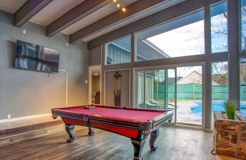 Spoil yourself in this wonder of contemporary architecture enriched with elegant furniture, tasteful artwork, and numerous relaxing and entertaining amenities. The luxurious and unique setting is enhanced by the fact that you can directly access the pool from the comforts of the open concept living room. Add an abundance of natural light coming through ultra-modern floor-to-ceiling windows and get a gorgeous setting you will be pleased to call home during the visit to Barnesville, GA.