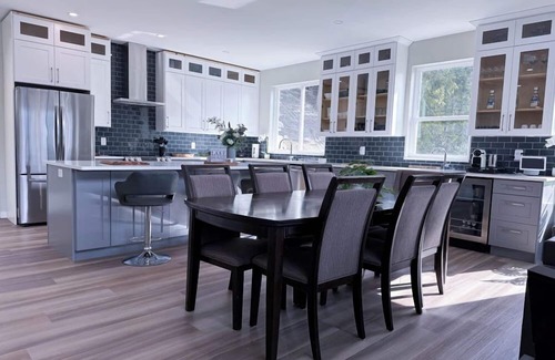 Cook up a storm in the fully equipped chef’s kitchen, featuring premium appliances, a spacious layout, and stylish cabinetry. The adjacent dining table seats everyone comfortably — perfect for family dinners or late-night games.
