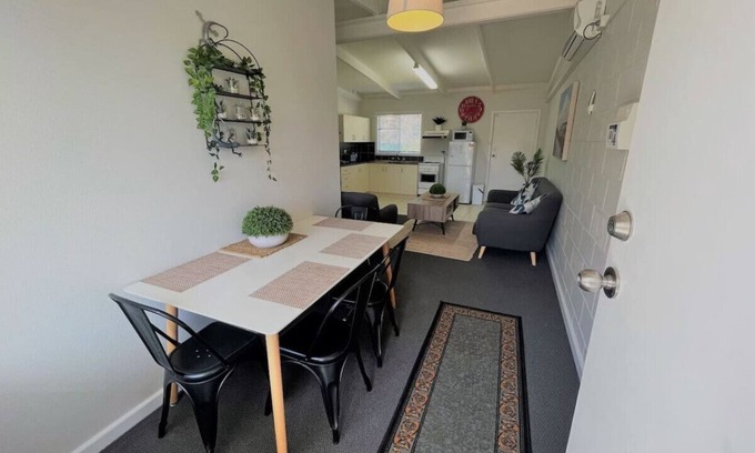 Bedroom 1 offers two king single beds, bedroom 2 offers a double bed. Open plan kitchen, dining and lounge area.