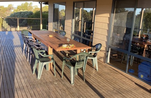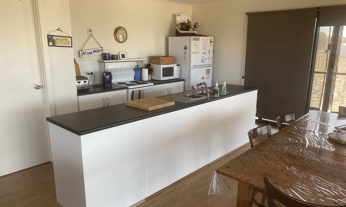This well appointed holiday house is a 100 metre walk to the pristine Black Point Beach. It has a magnificent spacious front deck where you can enjoy the view of the water and is great for entertaining.