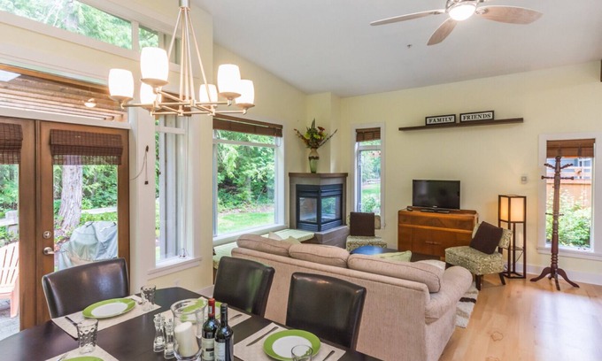 Relax on the quiet, private patio and enjoy the tranquil forest view while you test out the natural gas barbeque and keep an eye out for the resident deer.