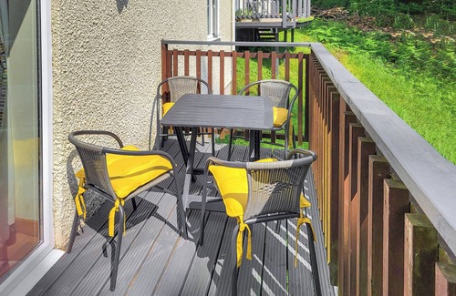 Bathroom: Bath With Shower Over, Heated Towel Rail, Toilet. Gas central heating, electricity, bed linen, towels and Wi-Fi included. Highchair. Grounds with balcony and garden furniture. Private parking for 1 car. No smoking. Please note: This property has a natural water supply via spring which is currently undergoing a major upgrade and is not fit for consumption. Fresh bottled water for drinking is required. Otherwise i.e. showering etc. O.K.. This cosy Bungalow accommodates up to four guests across two bedrooms, boasting a comfortable double bed and two singles. The bathroom has a bath with a shower over it and a heated towel rail for added comfort. The well-equipped kitchen seamlessly flows into the open-plan living area, complete with dining area with foldaway table for leisurely mealtimes.