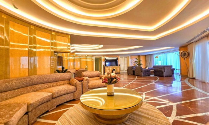 Welcome to the Presidential Penthouse, a rare and unique 10,764 sqft space adorned with Vintage Italian Design. Featuring three master bedrooms, a room with two single beds, three bathrooms, and a guest washroom. Enjoy exclusive amenities such as a private indoor pool, squash room, gym, a premium Italian kitchen. Relax in the Majlis (seats 30), dine at a table for 12, and savor downtown views from three balconies. Includes private parking, entrance, and lift—ideal for large families or groups.