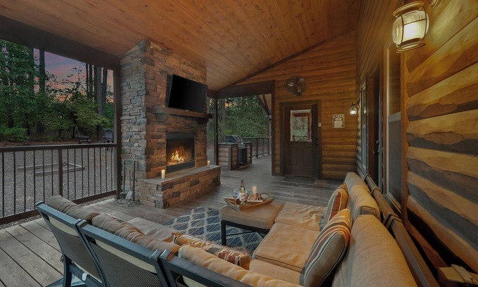 Timeless Romantic Cabin in Hochatown with Cozy Double-Sided Fireplace | Cabin in Broken Bow