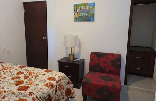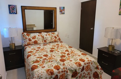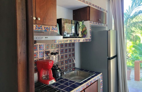 "Tiny" Condo in our adults only Condo tower Suenos Del Mar at Vista Encantada. Short and long term stays welcome at this condo with 1 bedroom and 1 bathroom. Can sleep up to 2 people with a double bed in the bedroom. Kitchen is equipped with pans, utensils, dishes, microwave, coffee maker, oven/stove. Private patio with partial ocean views. Adults only . Washers and Dryers in shared spaces for guests use.