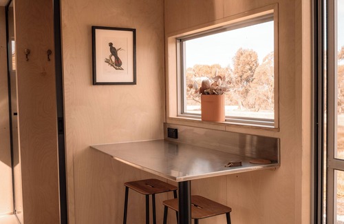 South Cabin is completely off-grid but that doesn't mean we compromise on modern luxuries. The cabin has air conditioning/heating, a wood fire, gas cooktop, fridge and filtered rain water. The cabin features a queen size bed with a selection of pillows to suit. A cozy lounge and work bench with chairs make for the perfect getaway. South Cabin is equiped with all the cooking essentials as well as an outdoor BBQ. High quality tea and a selection of filter and espresso coffee are provided.