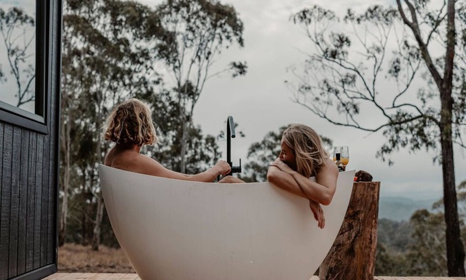 Tiny Kya sleeps up to four with a queen bed in the window and a double bed in the loft. There is also a reverse-cycle air-conditioner and heating unit. Discover a curation of Wandering Folk’s finest picnic essentials, throws and glassware and indulge in freshly roasted coffee, compliments of St Ali. Tiny Kya also features a beautiful deck complete with outdoor bathtub.
