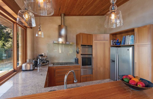 Birdsong wakes you each morning, and amenities like an infinity-edge pool, hot-tub spa, and expansive decks with panoramic views elevate relaxation. Indoors, find a fully-equipped kitchen, Starlink WiFi, a home gym, SmartTV, and comfortable bedrooms with dedicated bathrooms.