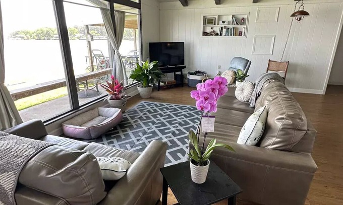 Best-rates for the Toledo Bend Huxley starts from $207 per night with includes TV, Ocean View, Sports/Activities, Fireplace/Heating, Guest Services, Entertainment, Laundry, Air Conditioner, Parking, Security/Safety, Bedding/Linens, Barbecue/Outdoor Cooking, Child Friendly, Bar, Kitchen, Pet Friendly, View, Balcony/Terrace, Internet With all other amenities. Float Homes offers a wide range of floating homes, houseboats, and water chalets, ensuring each traveler finds their ideal water escape, whether planning a water getaway, a family vacation, or a pet-friendly retreat with the whole group.