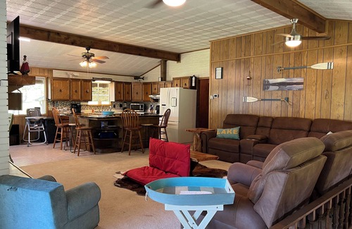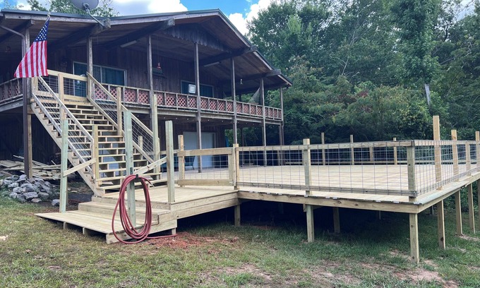 Relax with the whole family at this peaceful getaway in South Toledo Bend. Enjoy sitting at the beach just a short walk down the hill while waiting on your fisherman or tubers to return. Spend time with family shooting pool, playing corn hole, or a competitive game of cards. It's your vacation so take a nap in a hammock while reading your book. You are sure to make memories worth it all.
