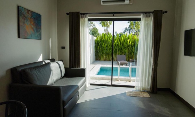 Food & DrinkTea/Coffee maker, Bottle of waterBathroomFree toiletries, Private bathroom, Bathrobe, Slippers, Bathtub or shower, Toilet paper, Body soap, Shampoo, Hairdryer, Bathtub, Toothbrush, Shower cap, TowelsMedia & TechnologyFlat-screen TV, TVGeneralTile/Marble floor, Trash cans, Key card access, Key access, Air conditioningKitchenElectric kettle, Kitchenette, Microwave, Refrigerator, Dining table, KitchenwareOutdoorsPrivate pool, Terrace, Balcony, Patio, Outdoor furnitureLiving AreaSitting area, Sofa, Dining areaViewPool viewAccessibilityEntire unit located on ground floorRoom AmenitiesSofa bed, Drying rack for clothing, Clothes rackPool and SpaSaltwater pool, Pool towelsPhysical distancingSingle-room AC for guest accommodation |