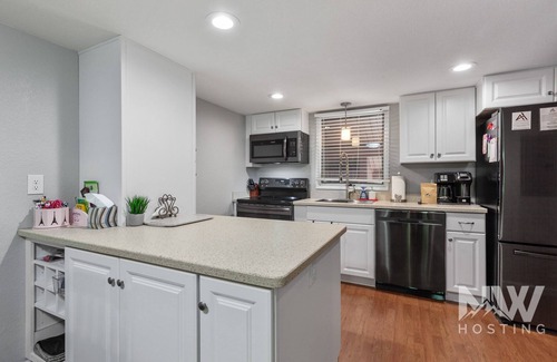 Experience the tranquil elegance of Twin Lakes Village. This refined 2-bedroom condo with a loft comfortably accommodates up to 4 adults and 2 children, providing a serene retreat with access to community amenities including a pool, a public golf course, and a lake. The inviting living room features a fireplace and smart TV, while the back deck offers peaceful wooded views. A reserved parking space adds to the convenience of your stay.