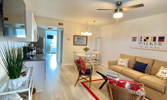 Walk to the beach a half block away. Park your car and bring your bike. (2) beach tags and 2 beach chairs and one umbrella are supplied for tenant use. Please NOTE: If beach tags are lost there will be a $200 charge per tag to replace. Shops, dining, boardwalk are all a short walk or bike ride away.