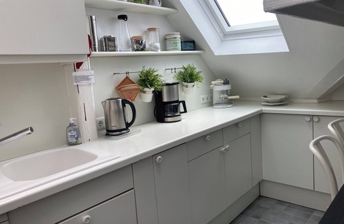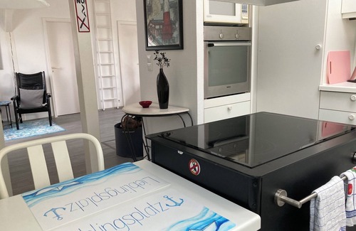 "About Mariensiel" is a bright, modern, renovated attic apartment with balcony, fireplace in the open dining / living area with sleeping loft, 2 separate bedrooms, well-equipped kitchen with dishwasher, oven, microwave. The bathroom has a large walk-in shower. Internet connection with WLAN, internet radio, satellite TV, DVD player are available.