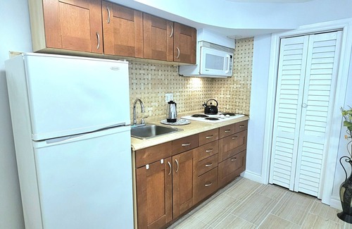 A cozy and private studio within walking distance of Lansdowne subway station in downtown Toronto. It is in a quiet neighborhood. The kitchen is fully equipped with large appliances. The studio is very comfortable and sleeps two. Grocery stores, restaurants, and entertainment options are within walking distance. High-speed Wi-Fi is available. Free laundry is included. LOWER STUDIO.