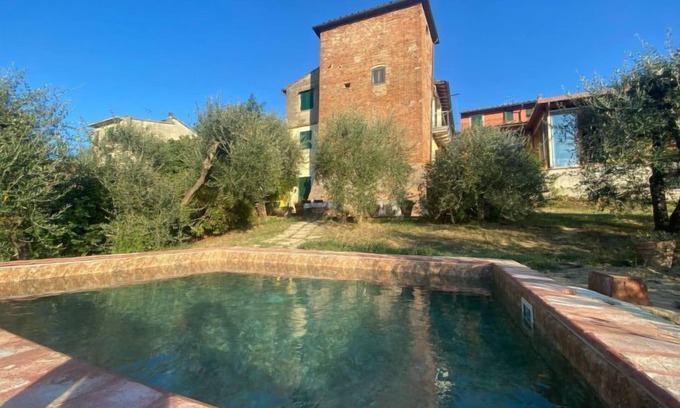 Rustic house "Torre di Meo", 120 m a.s.l 4 storeys, surrounded by fields and vineyards. In the centre of Castelnuovo d'Elsa 5 km from the centre of Castelfiorentino, 10 km from the centre of San Miniato, 13 km from the centre of Empoli, in a sunny position on a slope, 70 km from the sea. Private: natural state property, terraced garden with trees, natural garden 100 m2, swimming pool (5 x 4 m, depth 140 - 140 cm, seasonal availability: 15.May. - 01.Oct.). Terrace (40 m2), garden furniture, barbecue, pool maintenance by the owner/gardener. Narrow motor access to the house. Stepped path (10 steps) to the house. Parking at the house. Shop, grocery 50 m, supermarket 5 km, restaurant 100 m, bakery 50 m, railway station "Castelfiorentino" 7 km, sandy beach "Calambrone" 70 km, indoor swimming pool 5 km. Golf course (18 hole) 30 km. Nearby attractions: Certaldo 16 km, San Gimignano 29 km, Firenze 44 km, Volterra 44 km, Siena 65 km. Please note: baby equipment (included), not suitable for small children. Object suitable for 4 adults + 2 children. Animals in the neighbourhood.