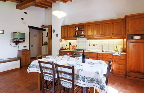 Torsoli 4 km from Lucolena: The Poggio is a beautiful independent farmhouse divided into 3 residential units, Torsoli (IT5269.840.1)) and Lucolena (IT5269.840.2) are two independent portions placed on the ground floor and below, where there is an apartment that the owner occasionally uses. Beautiful, rustic 3-family house "Il Poggio", surrounded by trees, meadows and fields. 15 km from the centre of Greve in Chianti, 16 km from the centre of Radda in Chianti, 35 km from the centre of Firenze, in a secluded, quiet, sunny position on top of a hill, in the countryside. For shared use: property 1 ha (fenced), large, well-kept garden with plants and trees, swimming pool (12 x 6 m, depth 120 - 160 cm, seasonal availability: 10.May. - 04.Oct.). Outdoor shower, garden furniture, barbecue. Private: garden. Garden furniture. Heating to be paid on the spot, heating available only from 01.Nov. - 15.Apr.. Motor access (50 m via unmade road). Parking. Grocery 4 km, supermarket 14 km, restaurant 2 km, bar 4 km, bus stop 3.5 km. Please note: car recommended. Suitable for families, suitable for seniors.