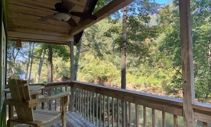 Don't overlook the river-facing porch with comfortable seating and beautiful views of the Ocmulgee River. The cottage is also situated on a large tract of land for exploring and comes with ample parking, perfect for a boat trailer. Towaliga cabins include amenities such as a charcoal grill, community fire pit, and access to Kayaks and Canoes.