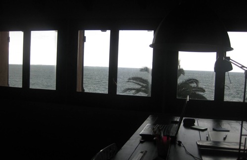 On the second floor there is a garret with wooden ceiling, a double bed, with large desk, sofa bed and stereo and overlooking the bay.