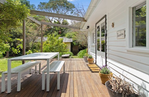 A short stroll from the Merricks General Store, this homely three-bedroom farmhouse oozes cottage charm and comfort for couples and families looking to enjoy country living. The back garden is a sun-trap, with ample outdoor furniture, and a large oak tree shading the sizeable garden also hosts a couple of swings. Inside, soft furnishings and 1920s features, including ornate ceilings and an open fireplace. Stroll along the rail trail between Merricks and Red Hill or some coastal clambering along the basalt rocks of Cape Schanck and the nearby lighthouse. Or just simply enjoy some of the Peninsula's top wineries with restaurant-quality menus from Paringa Estate, Montalto, Point Leo Estate and Stonier, just to name a few.