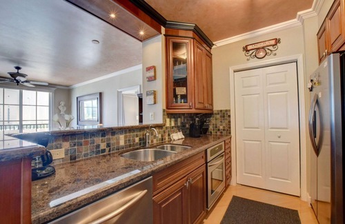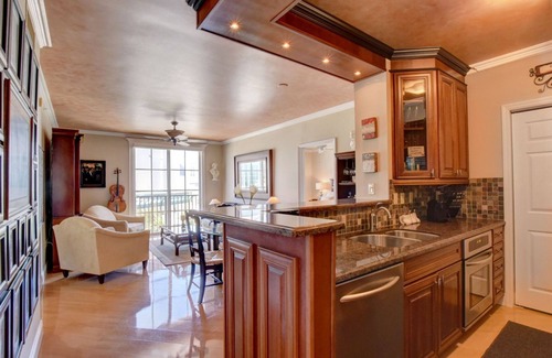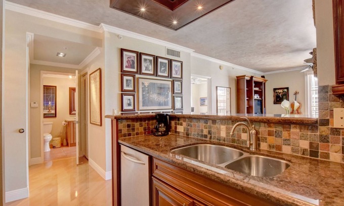 This elegant 2-bedroom, 2-bath condo offers comfort, convenience, and classic charm—perfect for both short stays and extended visits. The primary suite features a king-size bed and custom walk-in closet, while the second bedroom offers two twin beds—ideal for families or guests. Thoughtfully upgraded with granite countertops, wood cabinetry, and traditional finishes, this home feels warm, timeless, and welcoming.