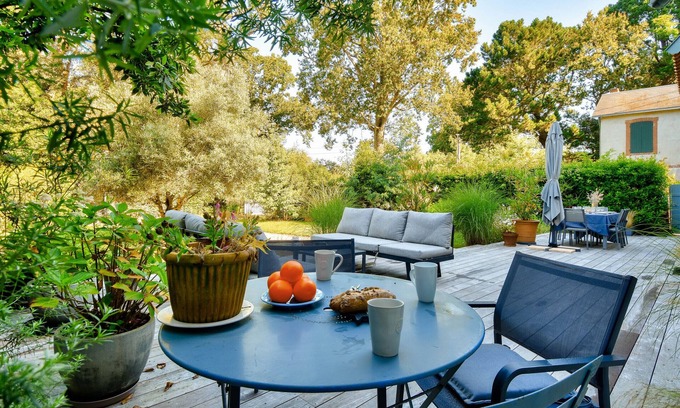 This beautiful traditional house, named "Les Fauvettes," is a unique place to spend your holidays in Noirmoutier.Nestled in the heart of the Bois de la Chaise, this green haven offers a complete change of scenery, just a few steps from the ocean.The owners have perfectly combined the charm of this historic home with a comfortable, modern, and carefully decorated interior.The soft pastel-toned decor creates a soothing atmosphere, making you feel instantly at home in a true seaside holiday house.And indeed, you’re only a few meters away from the famous Plage des Dames beach.This 120 m² holiday home spans two floors. Whether with family or friends, you’ll love discovering this charming property, featuring four bedrooms with double beds (140×190 cm) and three single beds in a dormitory on the upper floor.The ground floor offers a fully equipped kitchen with a dishwasher, oven, kettle, toaster, and more — perfect for preparing delicious meals and sharing convivial moments.The house also includes three modern bathrooms.In the large, enclosed, and lush garden, you’ll find outdoor furniture and a barbecue, inviting you to enjoy the Noirmoutier sunshine in total peace.In Noirmoutier, there’s no chance of getting bored, with shops and activities buzzing all summer long.If you're discovering the island for the first time, don’t forget your boots or "jelly shoes" — here, the favorite local pastime is shellfish gathering!Equip yourself with a rake and a shellfish hook for the experience.Another must-have on the island is a bicycle: the paths are completely flat, perfect for exploring!Cycle through the many bike trails across marshes, woods, and along the seashore, and stop by one of the wooden huts to taste delicious oysters harvested directly from the bay.Many other activities await you in Noirmoutier — it’s time to make the most of them!Atout France rating: 3 stars as a furnished tourist accommodation for 8 people.This rental includes a concierge service with a team available throughout your stay for personalized services.This property has Wi-Fi access.It is not accessible for people with reduced mobility.Pets are not allowed in this rental.Tourist tax is not included in the rental price and must be paid before your stay.REF: hoomy10301