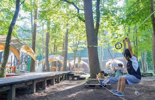 A campsite located at Lake Kawaguchi Fuji that offers a natural lifestyle