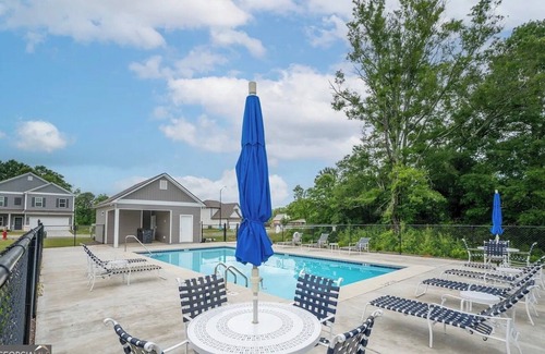 Yes, this Calhoun house has a swimming pool. Check the Facility Overview section for details about the pool and other available facilities.