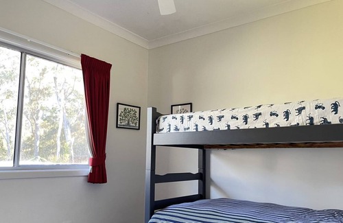 Both main bedrooms have queen sized beds, wardrobes, and sliding doors leading to outside. The third bedroom with bunks will be a great room for the kids to have a cozy night sleep.