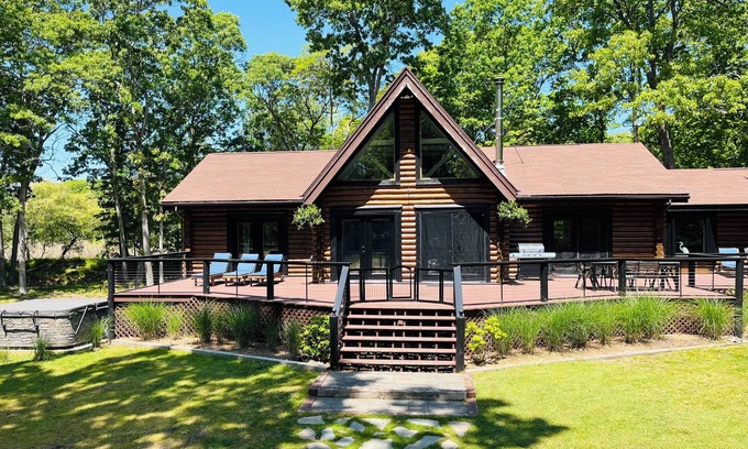 Private modern 4 bedroom/2 bath cabin near the bay situated on 3.8 acres on culdesac. The cabin is set 200 ft off a quiet culdesac that lies across the street from Gull Pond. Separated on three sides by no less than 3 acres of woods and Northfork beauty. 50% of property is backed by over 10 acres of nature preserve. Property is filled with amazing song birds as well as deer and wild turkey. It is truly a nature lover’s sanctuary!