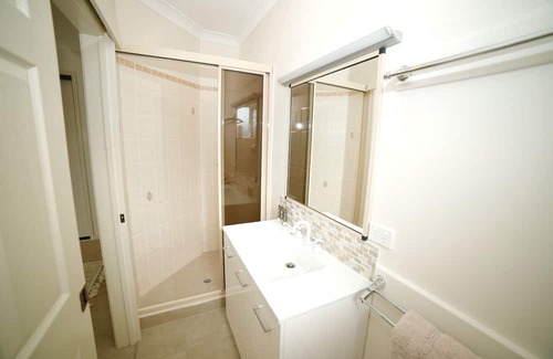 Rest easy in three bedrooms accommodating six guests. The primary bedroom boasts a luxurious queen bed, ample wardrobe space, and direct access to an ensuite bathroom with a glass shower. The second bedroom offers another luxurious queen bed, built-in wardrobes, and stylish furnishings, with easy access to the second bathroom. The third bedroom two long-single beds with ample light through the large window looking out to tranquil garden. The main bathroom offers a powder room before entering into the bath and shower area. Enjoy a relaxing bath with complimentary bath salts and body scrub.