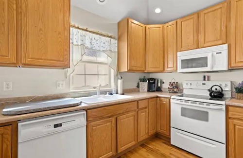 Large open 1,500+ SQ. Ft. home with a fully stocked Kitchen, 5G Fast WiFi, 3 large bedrooms, 2 baths, 2 car garage to parking in with garage door opener. Fully fenced private backyard with huge back patio w/ sitting area and grill available for you. The home is located across the street from the Greenway 11-mile walkway. The home is Close to shopping, Grocery stores, dining and Coffee shops etc. NO STEPS into this home and bathroom grab bars. Gas log fireplace and central A/C.