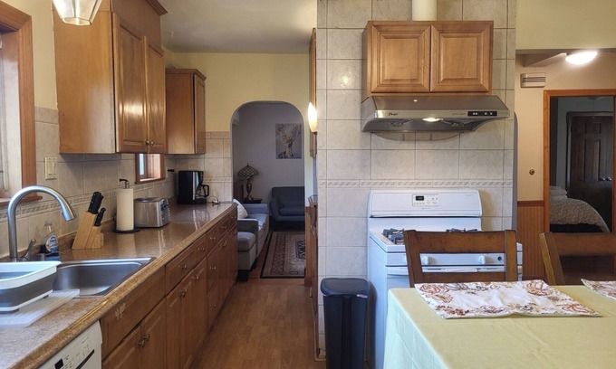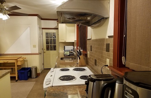 While you're here, you can enjoy all the comforts of home and more, including a rainfall showerhead and a refrigerator, as well as an oven and a stovetop. Other amenities include laundry facilities, towels, an electric kettle, and kitchenware and utensils.