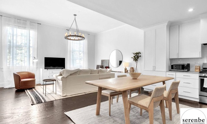 Come relax in this pristine loft with King bed in the Serenbe Textile Lofts in Grange. Soft Light, Serenbe Farmhouse Chic design and outfitted with all modern amenities. Loft 206 is a one bedroom, one bathroom loft apartment with high ceilings, plenty of natural light + treetop views.