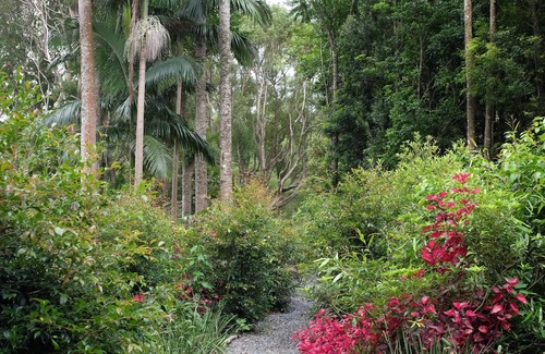 Pathways throughout the property lead through native bush, lawned areas with gardens, fruit trees , acres of rainforest and a lemon myrtle orchard.