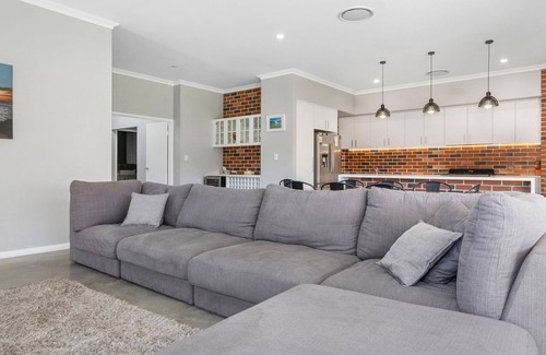 The open plan kitchen, living and dining is large enough for everyone to enjoy, as well as a well appointed kitchen with stone benches, chefs cooker and dishwasher. Off from the kitchen is the butlers pantry with the laundry that has both a washer and dryer. For families, the addition of a high chair and cot ensures that even the youngest guests are comfortably accommodated.