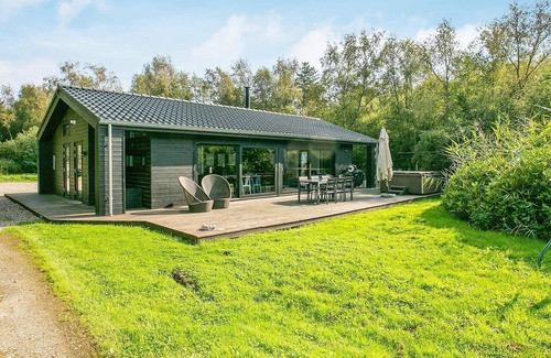 Layout: Kitchen(cooker(electric), microwave, dishwasher, fridge-freezer), Living/bed room(TV(german television channels, danish TV channels (DR1 and TV2))), bedroom(double bed), bedroom(double bed), bedroom(single bed, double bed), bathroom(dishwasher, washbasin, shower, toilet, washing machine), bathroom(washbasin, shower, toilet), mezzanine(TV(german television channels, danish TV channels (DR1 and TV2))), Bubble bath(outside, heated, 5 persons), balcony or terrace, heating(electric), garden furniture, sun loungers, BBQ, fish cleaning table, air to air heatpump