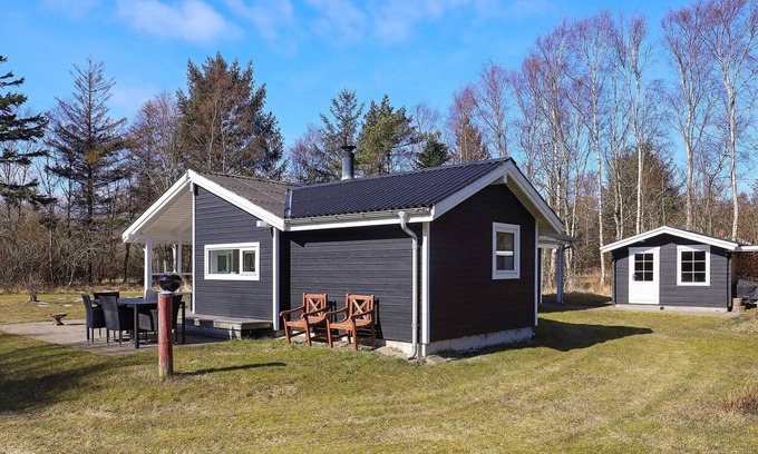 Holiday home located in scenic and quiet surroundings in Råbjerg / Bunken. Not far from Råbjerg Mile. The house is extremely well maintained and well furnished with three good bedrooms, bathroom with shower and kitchen / family room in connection with the living room with wood stove. Utility room with washing machine. From the family room there is access to a south-facing terrace, where it is possible to extend the summer evenings and enjoy the barbecue. On the large plot, there are good opportunities for the children to frolic with play and games. It is only 1500 meters to the nearest beach. The cottage is located midway between the North Sea and Kattegat, on Skagen Odde, and with only 4 minutes walk through paths from Golfbanen Hvideklit. There is only 8 km to the North Sea by the small country road towards Skiveren. Here there are wide sandy beaches and you can drive the beach, however at your own risk. In an easterly direction there are 4 km to the gentle Kattegat, with shallow water and not quite as wild waves as to the west. Trains run from Bunken station to Skagen and Frederikshavn. Not for rent to youth groups.