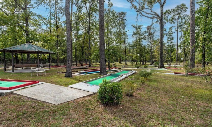 Welcome to Bundick Lake Retreat & RV Park! Our cozy cabin offers 1 room, accommodating up to 4 guests, with one shower and toilet. Our amenities include mini-golf, fishing, a swimming pool, and more. Come experience the ultimate vacation with us!