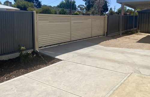 Our home is located a short walk from the Main Street and playground. We are pet and family friendly with secure fencing, cement paths, paved entertaining area, electric driveway gate and roller door for garage (no need to get out your car in the heat and rain), ramps and rails for both entrances to our home.