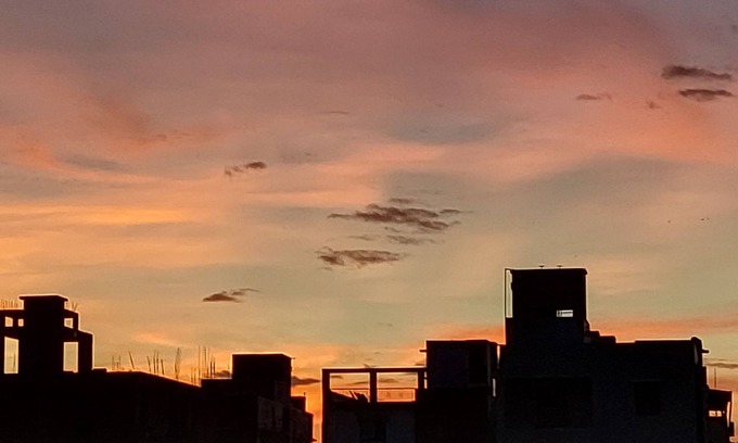 We have two bedrooms one with an attached bathroom. The other Bedroom has a balcony overlooking a wide empty green area. There is a kitchen, and a large dining cum drawing/ sitting room with Sofa set