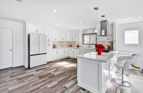 Welcome to this modern home adorned with a comprehensive newly renovated, the designer residence showcases a harmonious blend of new finishes, top-of-the-line materials, exceptional surfaces, a newly designed resort-style backyard with a patio to entertain, a swimming pool, and spa, and so much more. Boasting four bedrooms, and two and a half bathrooms the property is artfully designed to exude both intimate ambiance while still allowing for large capacity, grand-scale entertaining thanks to open-concept living.