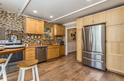 Step inside and be greeted by a warm and inviting atmosphere. The tastefully decorated living spaces provide a comfortable retreat after a long day. Relax on the plush sofas while enjoying your favorite shows on the large flat-screen TV or indulge in the ambiance of our wood-burning stove with a glass of wine.