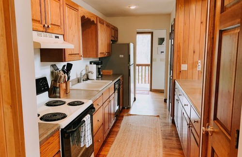 Travis Lodge is located at Crockett's Run - a Lodging, Glamping, and Event Space on 56-acres in Hocking Hills, OH. Events are typically held on the weekends in the Spring, Summer, and Fall. Travis Lodge is tucked away and not located near the event lodge. There are hiking trails, a pond, and a playground available on-site for Crockett's Run guests.