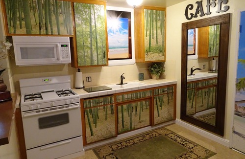 Identity verification and credit check required before check in. Beautiful wall murals of a Treasure Chest, Pirate Ship, Compass & Beach in every room of this new, centrally located home with grocery stores restaurants and shops within walking distance. Full sized automatic garage right off the kitchen. Free WiFi, huge closets, lots of drawers, Master bedroom has King bed, second bedroom has Queen-sized pillow-top bed. All welcome, bring your pet - huge front lawn out your front door and private dog run through medium pet door (7"x11").