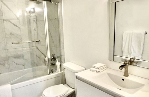 Kick back and relax in this calm, stylish space. This is a top floor unit. Only 1/2 top floor suites. It’s on the tree side of the building and is private. It features marble tile washroom. 1960s refinished hardwood. A apartment size kitchen with basic cooking supplies. 50” smart tv, sofa sleeper sectional, premium linens and towels make your stay more comfortable than in a hotel. This location cannot be beat as it’s right next to the ocean, grocery, and local amenities.