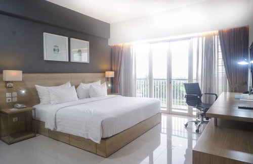 TreePark Karawang offers 124 air-conditioned accommodations with safes and complimentary bottled water. 39-inch LCD televisions come with cable channels. Refrigerators and coffee/tea makers are provided. Bathrooms include shower/tub combinations, bathrobes, complimentary toiletries, and hair dryers.